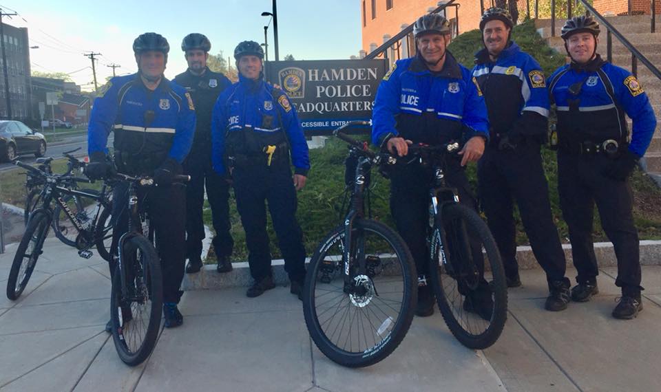 The mission of the Hamden Police Bicycle Unit is to have personal interactions with the community. Officers are able to build relationships with residents and business owners. They patrol the Farmington Canal Trail as well as neighborhoods around town.